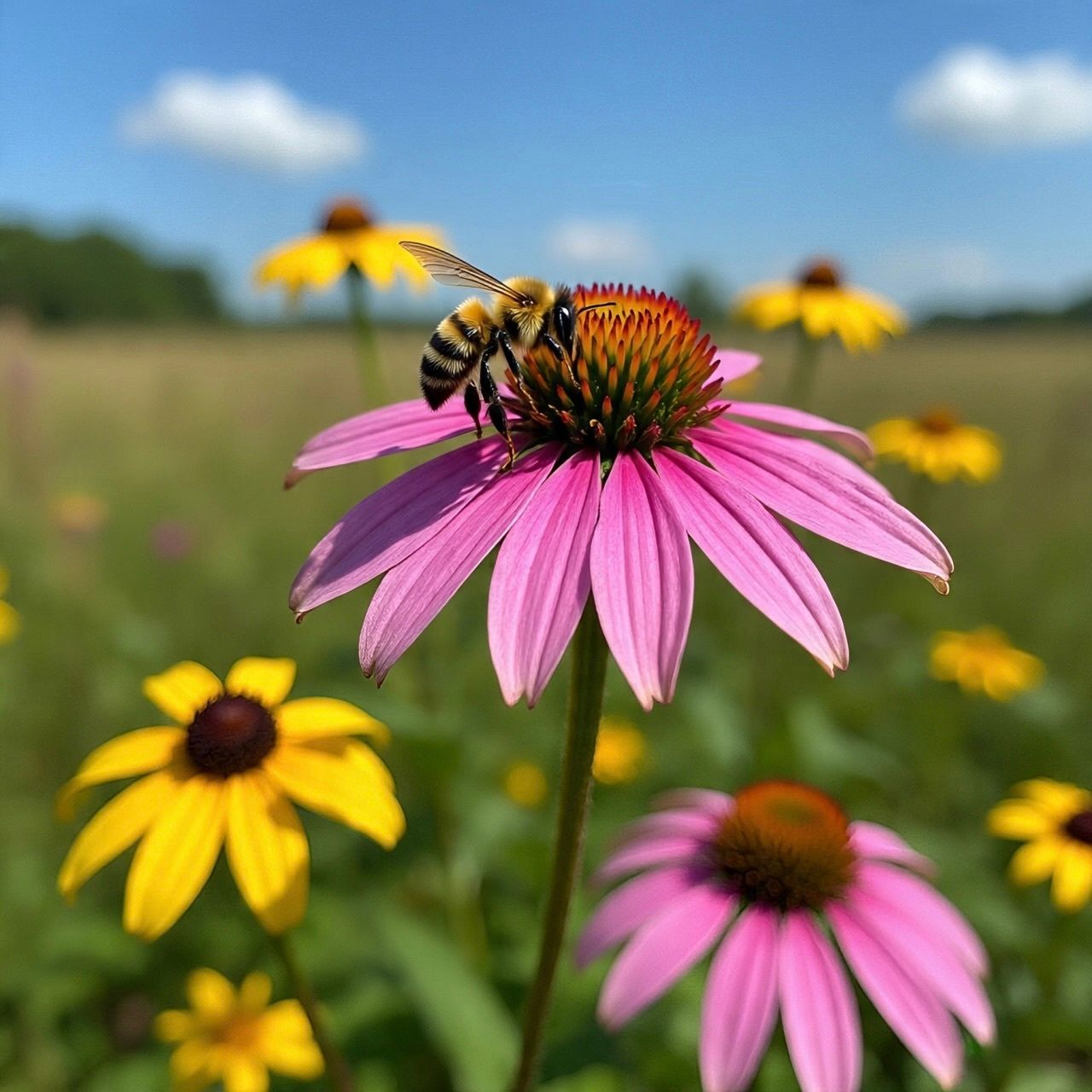 Purple Coneflower (Echinacea purpurea): Pink-purple blooms from June to August; 2-4 feet; sun to part shade; supports birds and butterflies; low maintenance.
